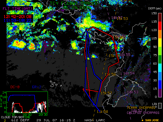 GOES-12 DEFF image (29 July 2007 16:15 UTC) with aircraft flight tracks